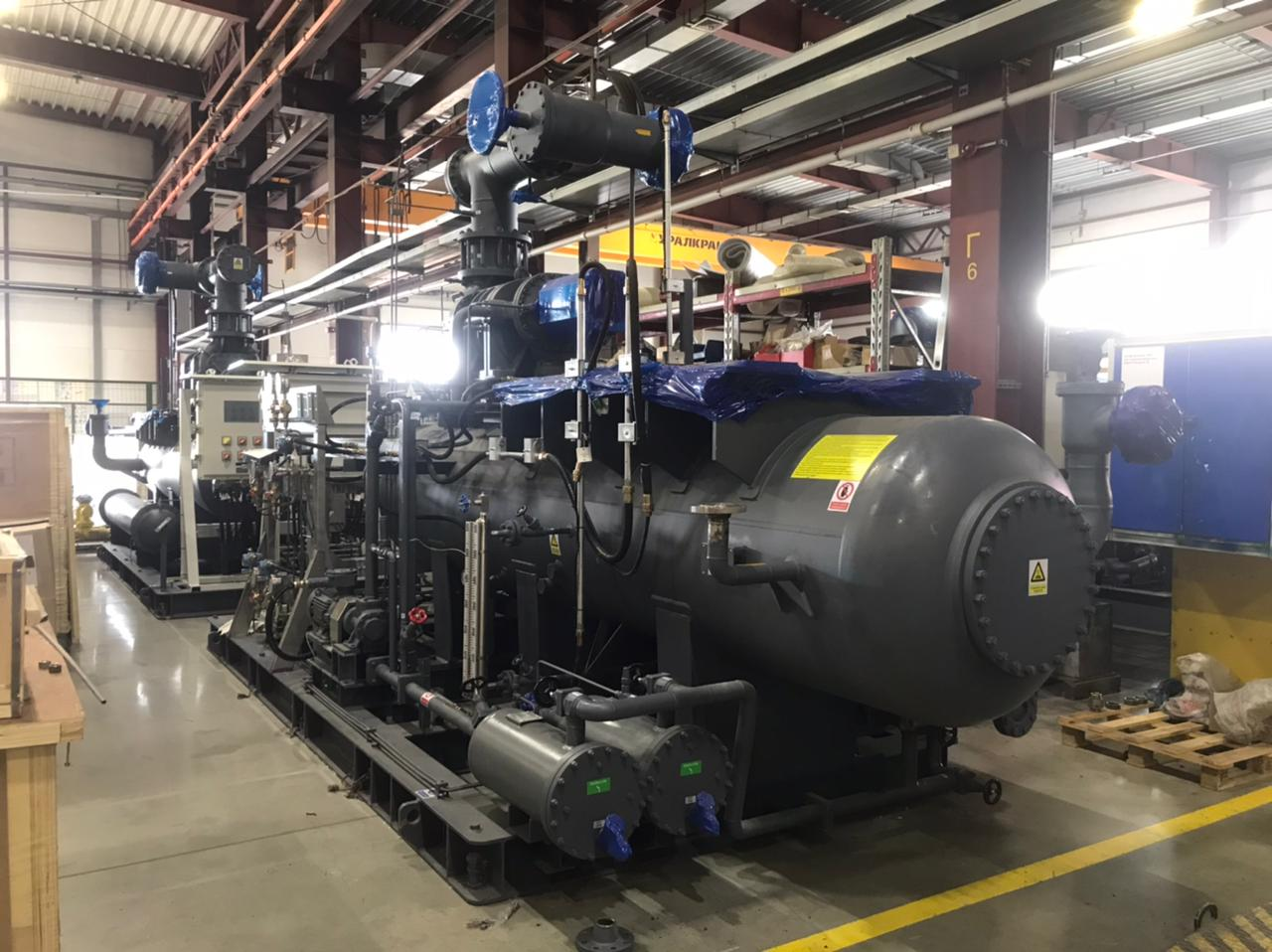 Винтовые компрессорные агрегаты будут работать в составе аммиачной холодильной установки (АХУ) одного из нефтехимических предприятий Волгоградской области. В данном проекте был использован винтовой блок Moon-tech, с объемной производительностью 2800 куб.м/час и потребляемой мощностью электродвигателя 500 кВт во взрывозащищенном исполнении.Перед отгрузкой на агрегате выполнены следующие доработки: